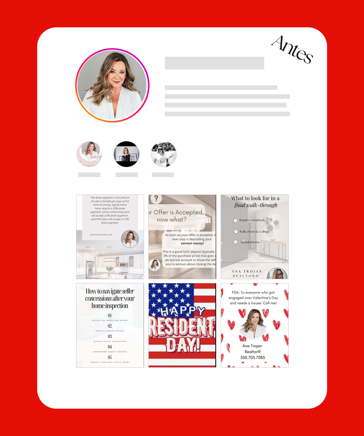 As postagens não refletiam o tom acolhedor e profissional que a Ana transmite pessoalmente..