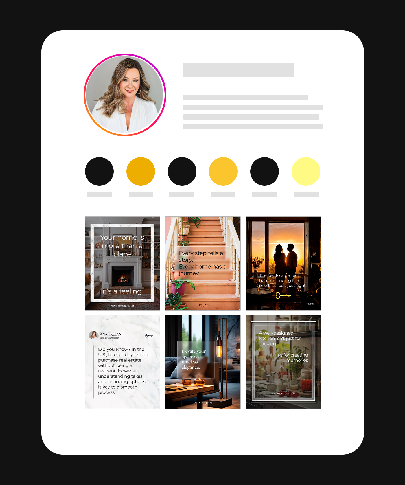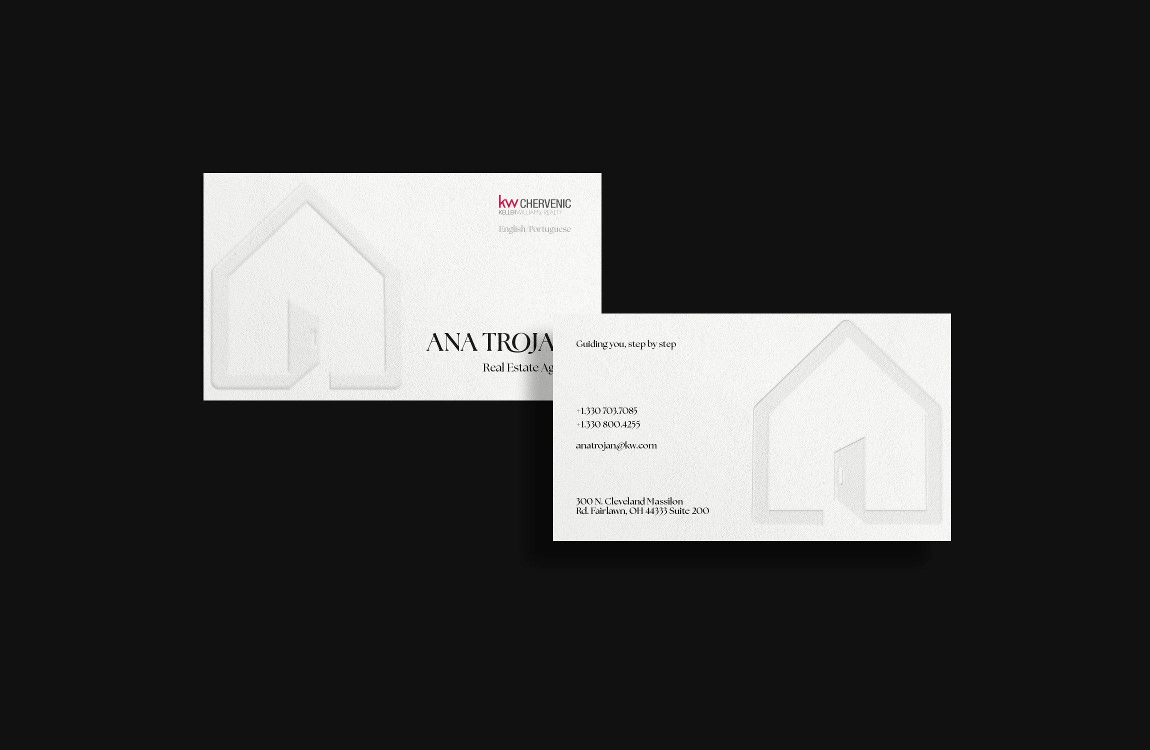 Como Ana atua como corretora associada, a marca precisava manter sua essência pessoal (acolhedora e profissional), mas também ser neutra o suficiente para se adaptar a diferentes imobiliárias, já que mudanças podem acontecer ao longo da carreira.